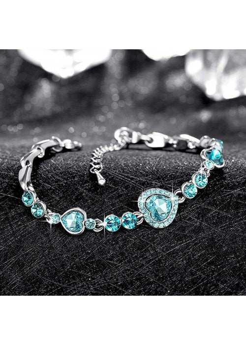 Amazing Crystal Heart Design Silver Plated Fabulous Charm Bracelet For Women/Girls
