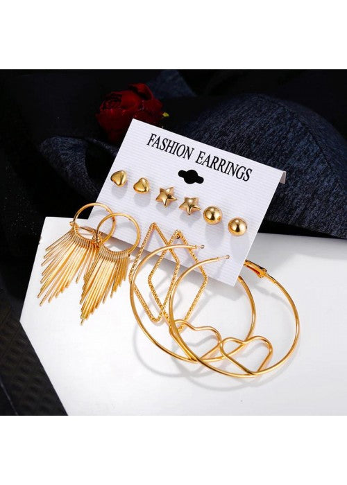 Upgrade your jewelry collection with Spin Spring Combo of 6 Pair Gold Plated Earrings. This stylish set features six pairs of gold-plated earrings in various designs, perfect for adding a touch of elegance to any outfit. Ideal for both everyday wear and special occasions, these earrings offer versatile and timeless appeal.