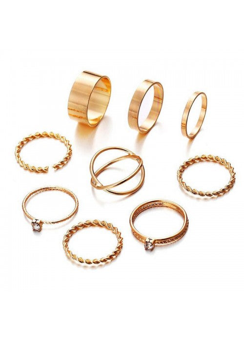 Discover elegance with Spin Spring Combo of 9 Gold Plated Mixed Sized Rings, perfect for women and girls. This versatile set features nine gold-plated rings in a variety of sizes and styles, ideal for stacking or individual wear. Enhance your jewelry collection with this chic, must-have assortment for any occasion.