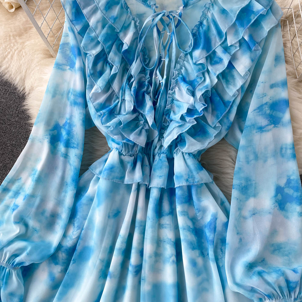 Our show-stopping Tie-Dye dress, adorned with ruffle detailing and flared sleeves, is a perennial favorite. Perfect for day events or evening gatherings, the flared sleeves enhance the overall aesthetic appeal, making it a year-round bestseller.