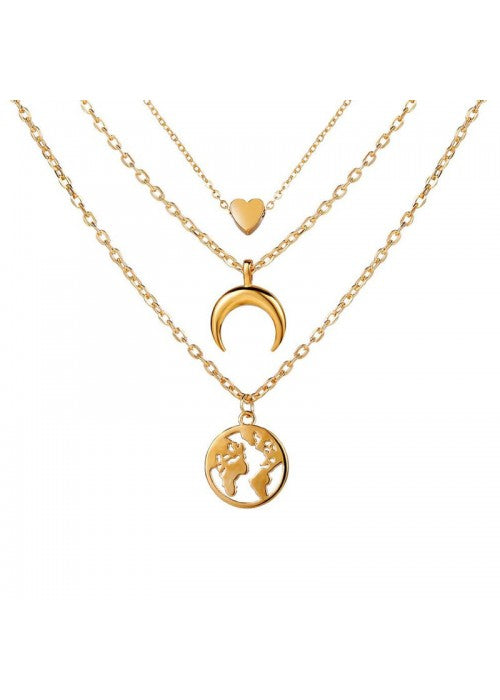 Gold Plated Trending Globe Inspired Layered Necklace Set