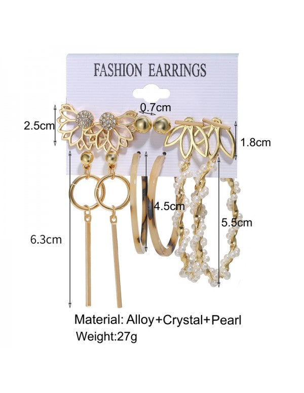 Mesmerizing Pearl Gold Plated 6 Pair of Earrings For Women/Girls