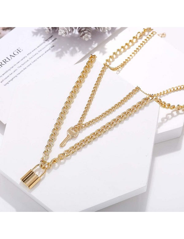 Stunning Gold Plated Lock Key Design Necklace For Women/Girls