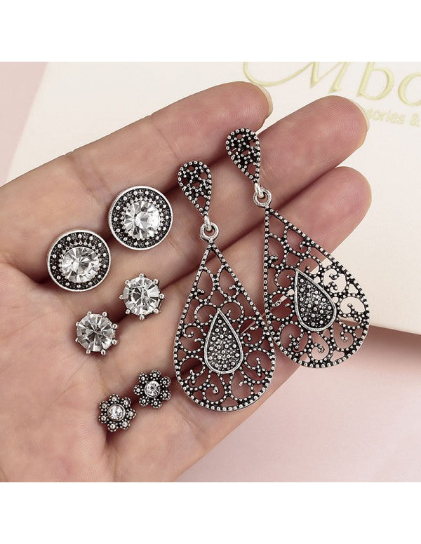 Trendy American Diamond Vintage Retro Mesmerizing Stud & Droplets Earrings For Women/Girls