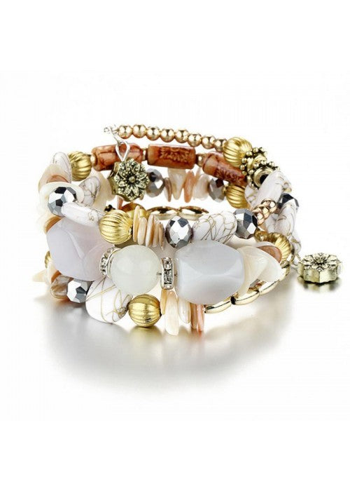 White & Gold-Toned Copper-Plated Stone-Studded Multi-Strand Bracelet