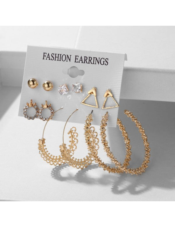 Wonderful AD Geometric Gold Plated 6 Pair of Earrings For Women/Girls
